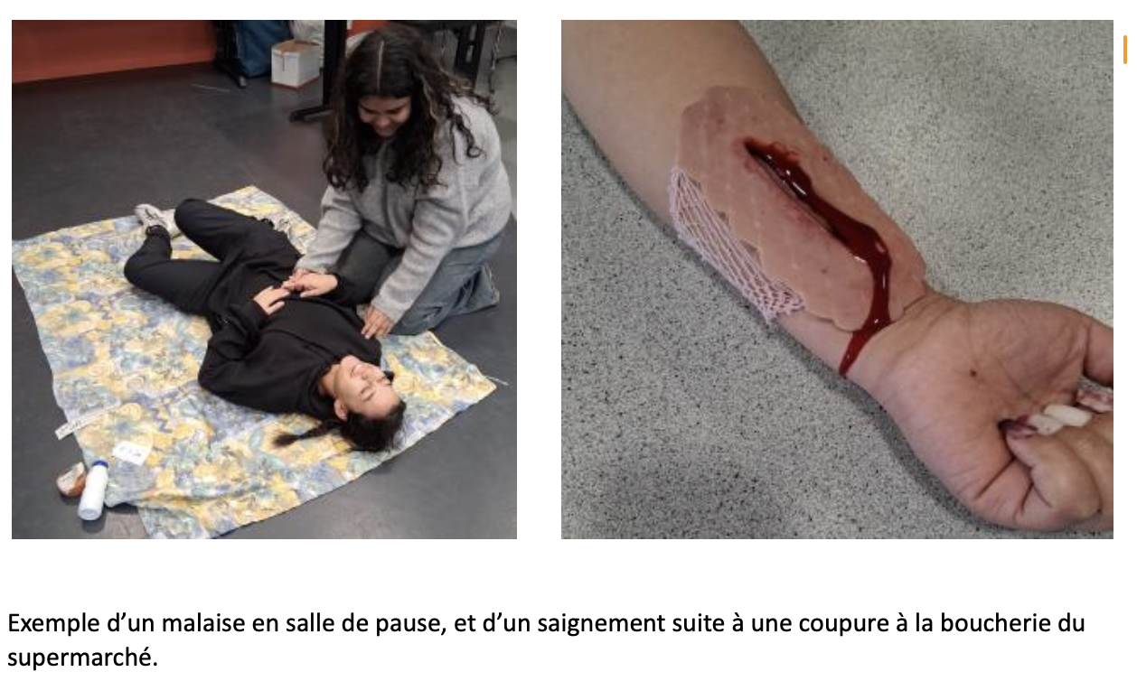 Pour apprendre tout ça, on a fait beaucoup de mise en situation avec du matériel et même des mannequins.